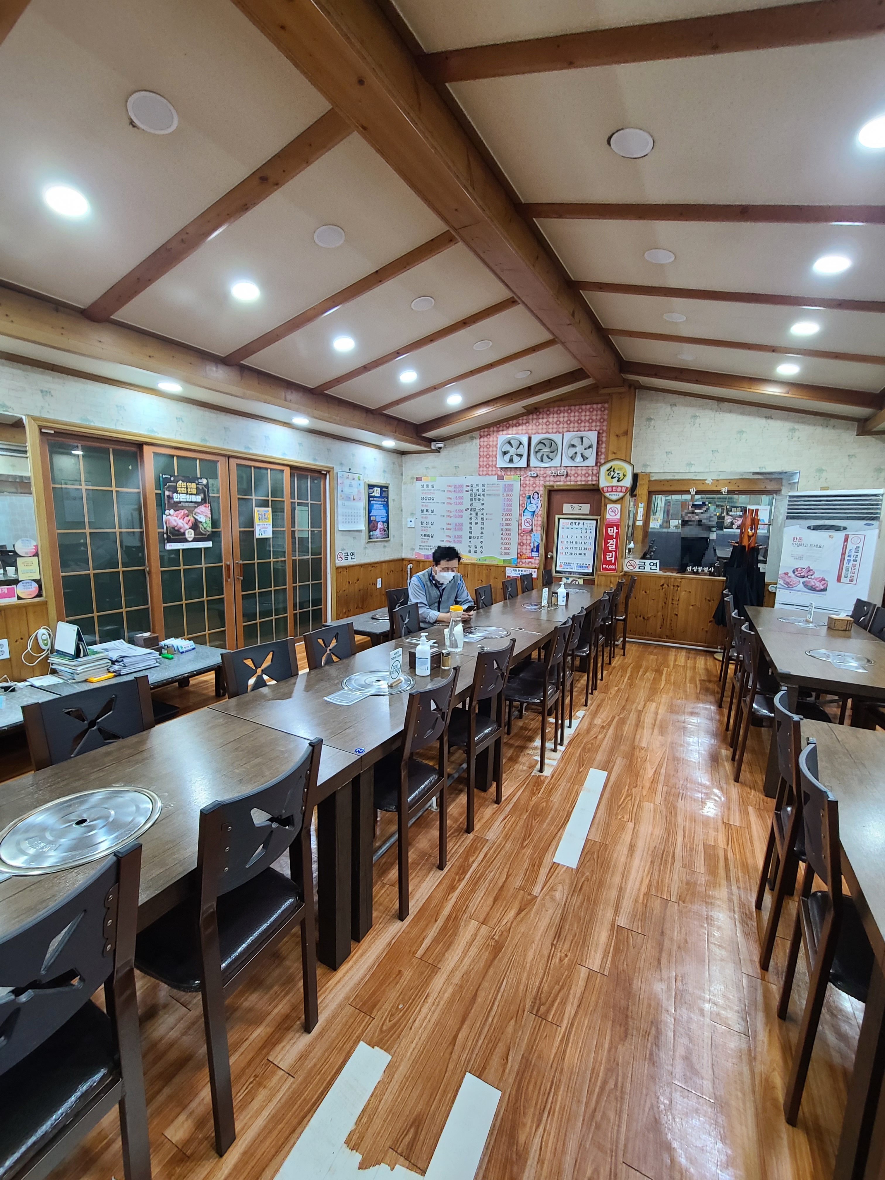 미닫이 문을 한번 더 들어가면 테이블이 두줄로 세팅돼 있고 좌석은 많습니다.