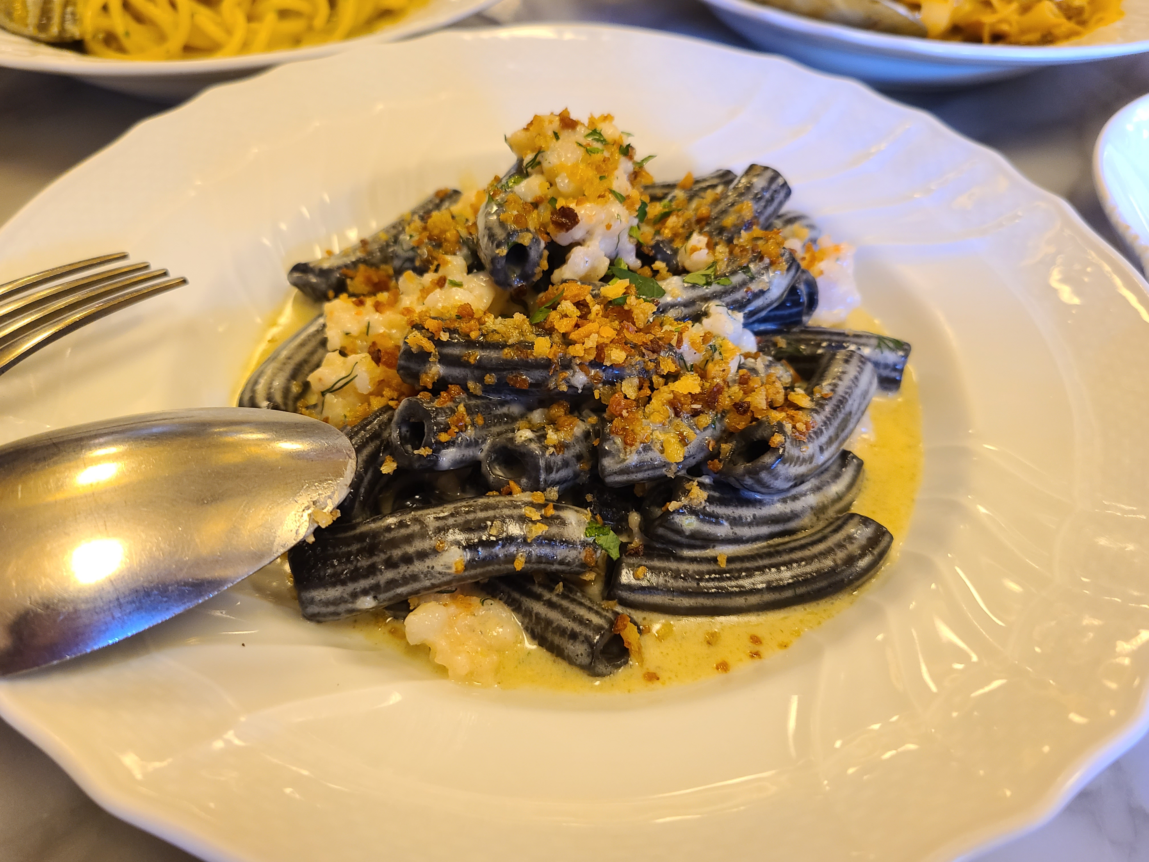 그러던 중 오징어 먹물 펜네 파스타가 서빙되었습니다.