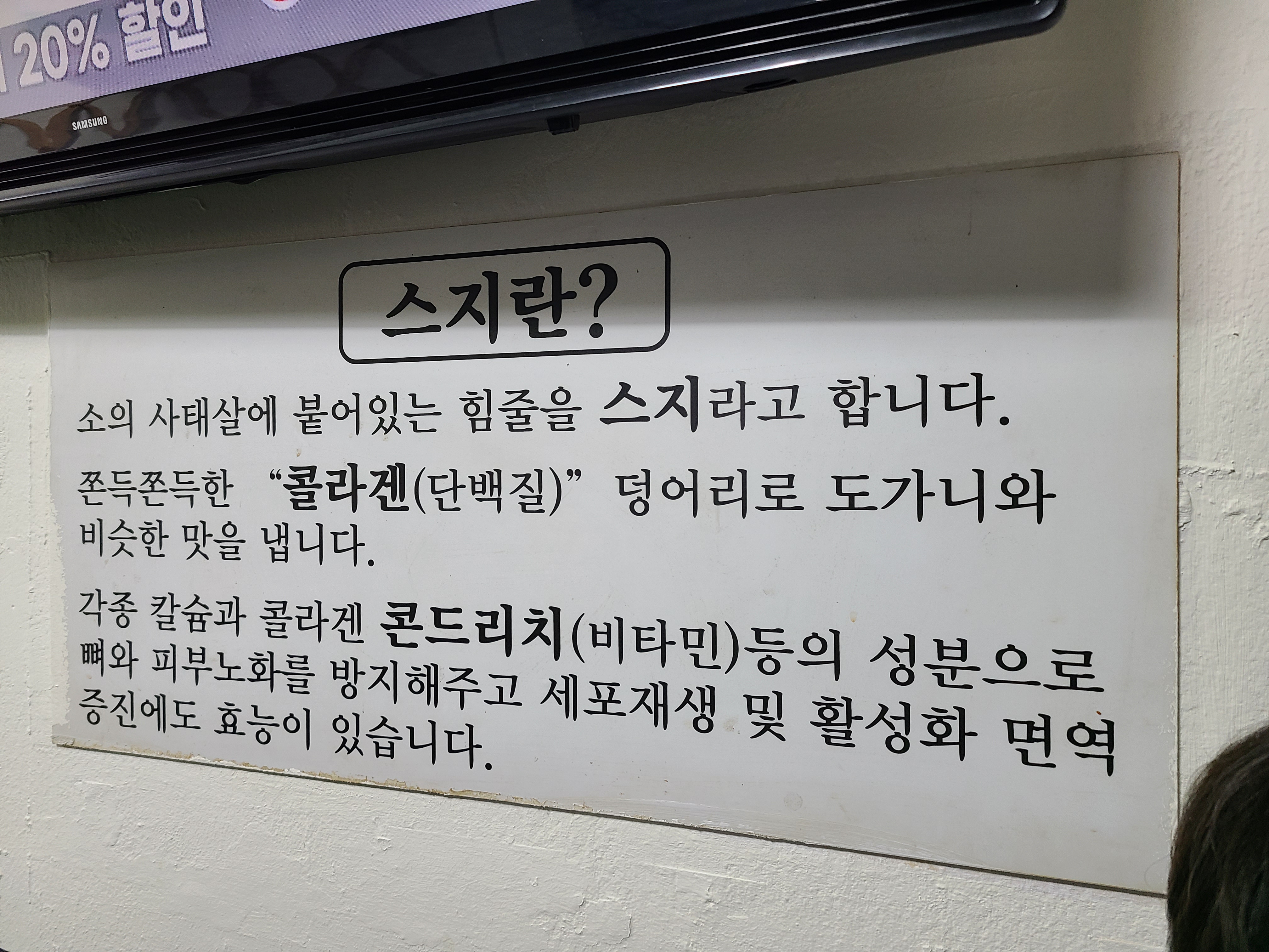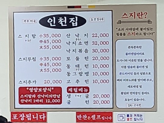 - 메뉴: 스지탕, 스지무침, 모둠전 등