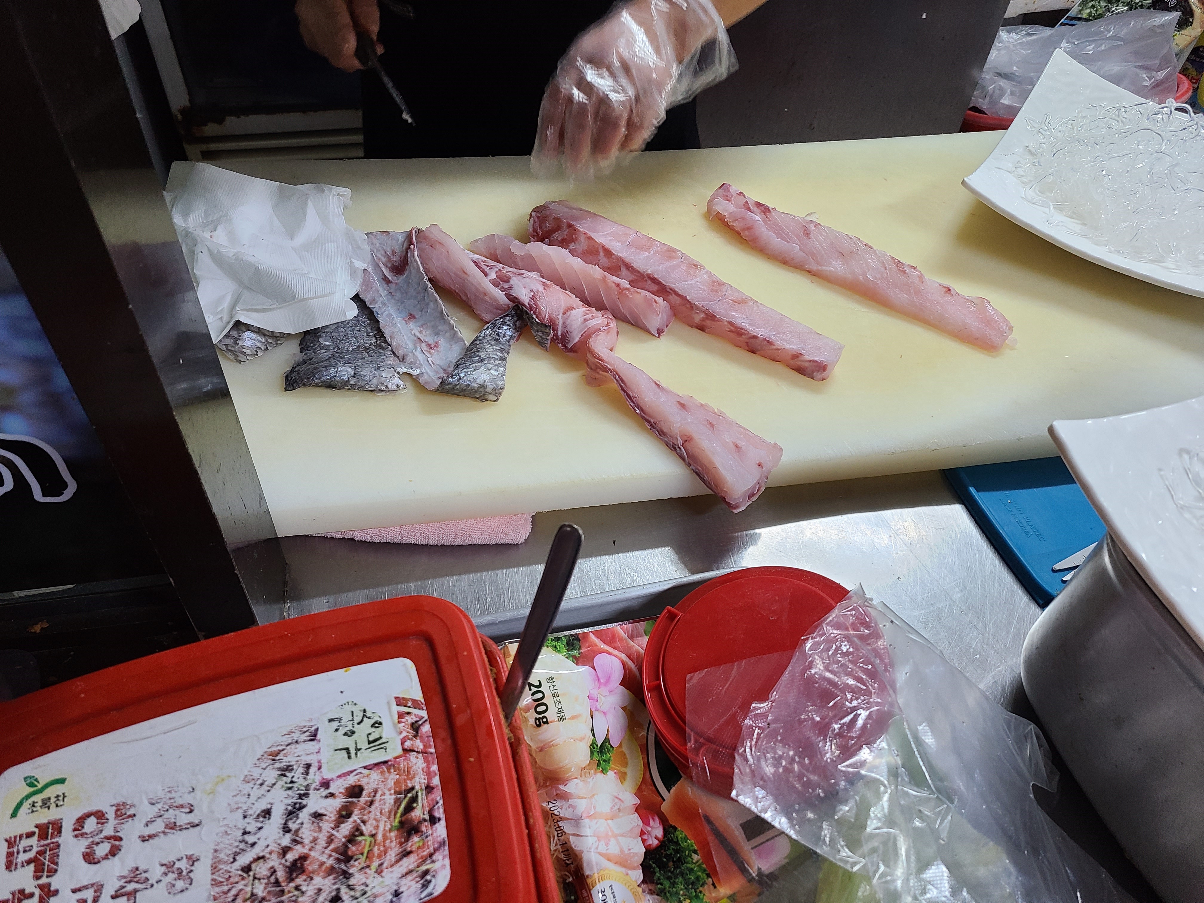 민어회에서 부레는 꼭 먹어봐야 하는 부위라고 생각하기에 실망감이 컸습니다.