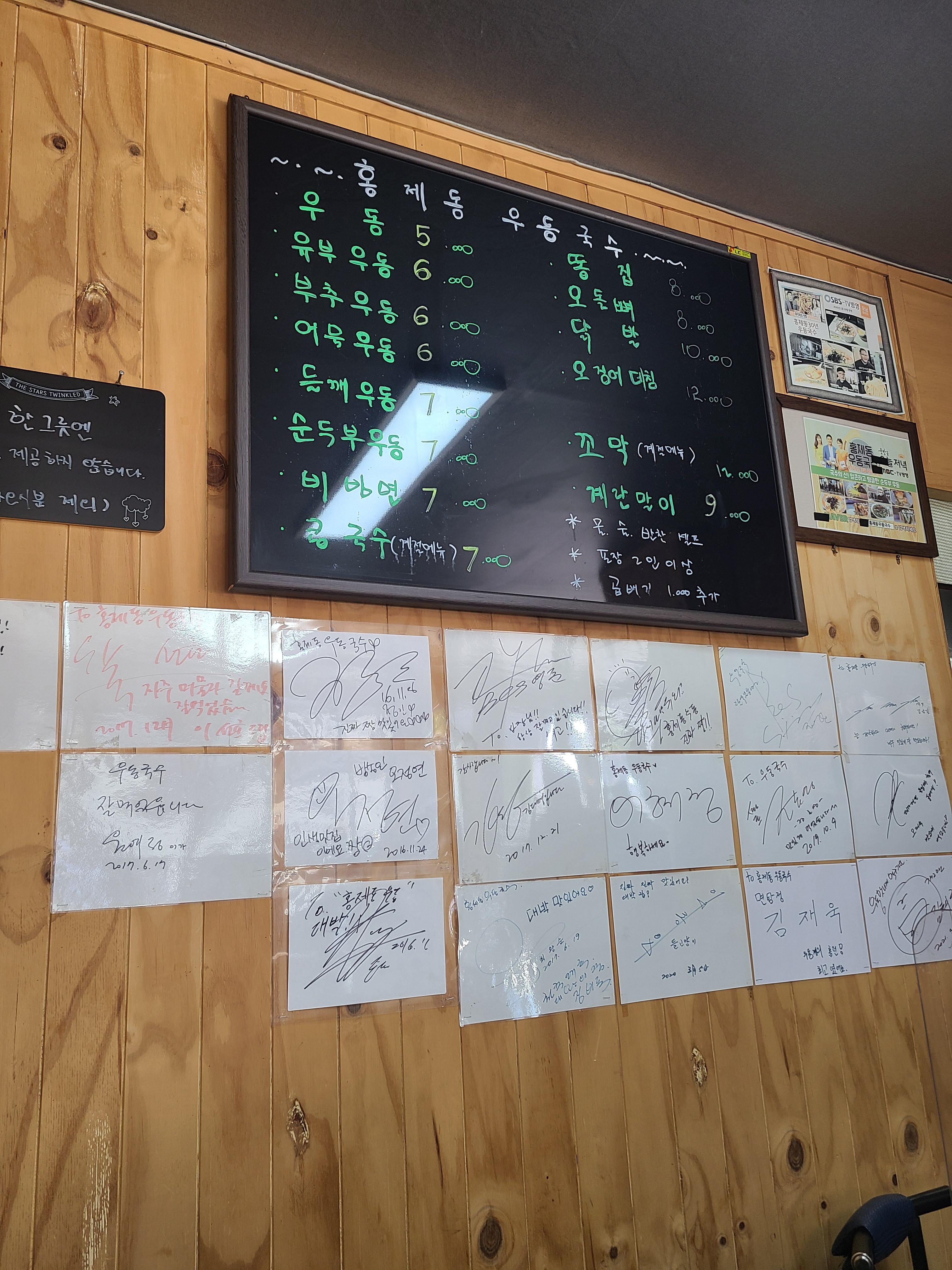 메뉴판 아래로 방문자들의 싸인이 많이 붙어 있습니다.