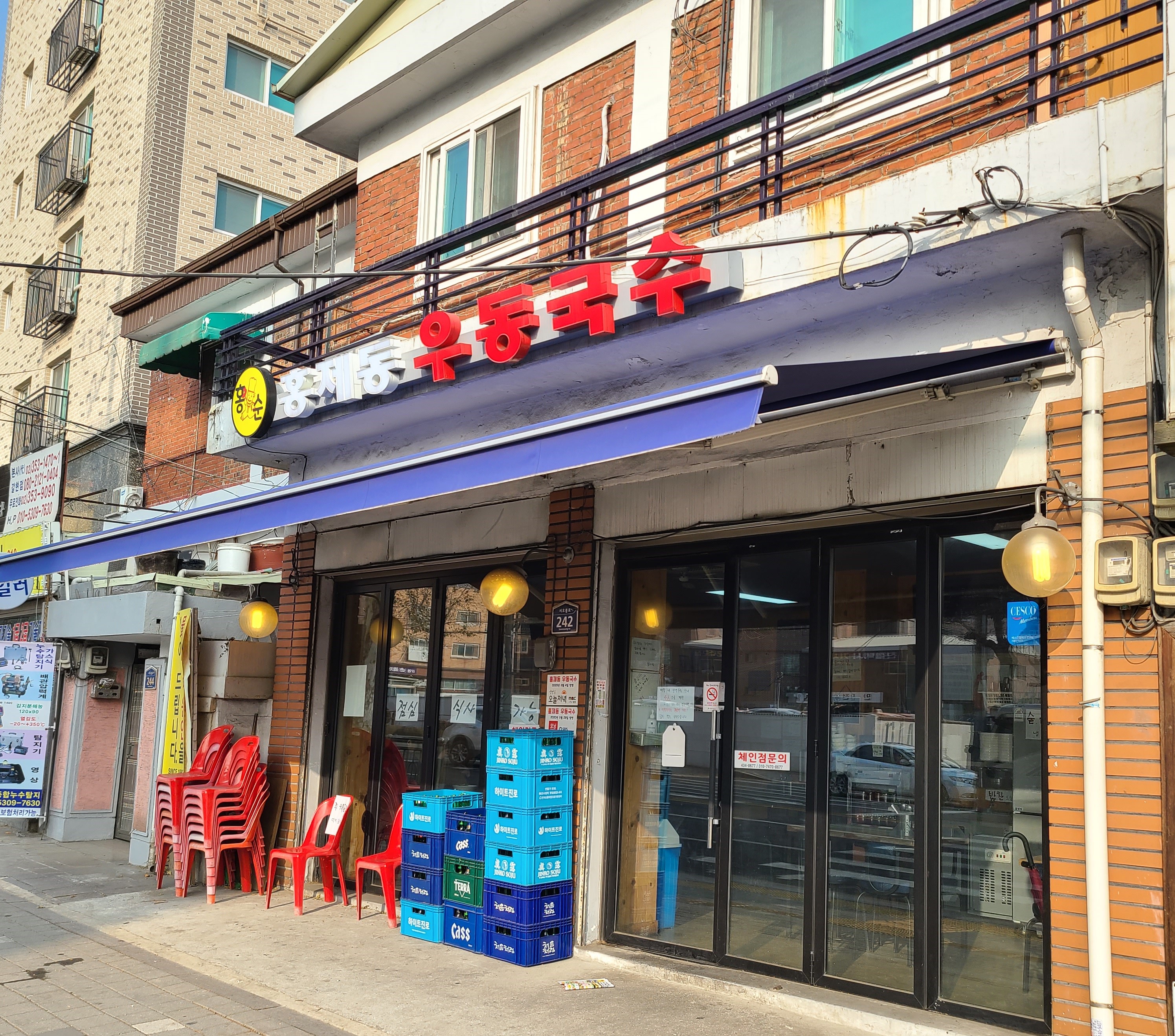 - 메뉴: 순두부우동국수, 우동, 유부우동, 어묵우동, 부추우동, 들깨우동, 계란말이, 닭발 등