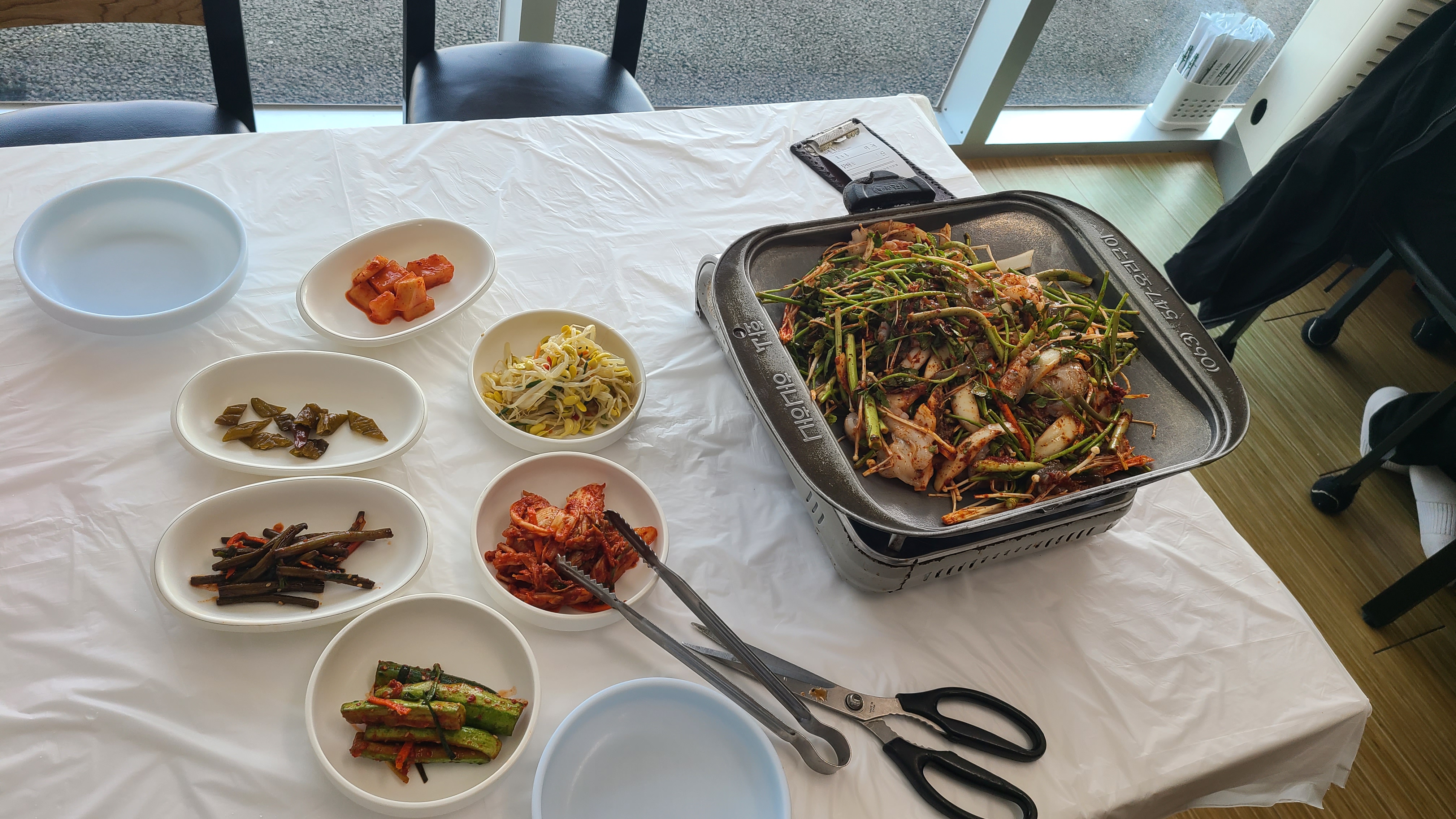 철판이 조금 특이했습니다.밑반찬은 배추김치, 깍두기, 콩나물, 마늘쫑, 오이소박이, 고추짱아치가 나왔습니다.반찬은 큰 특색은 없었고 전체적으로 맛있었습니다.