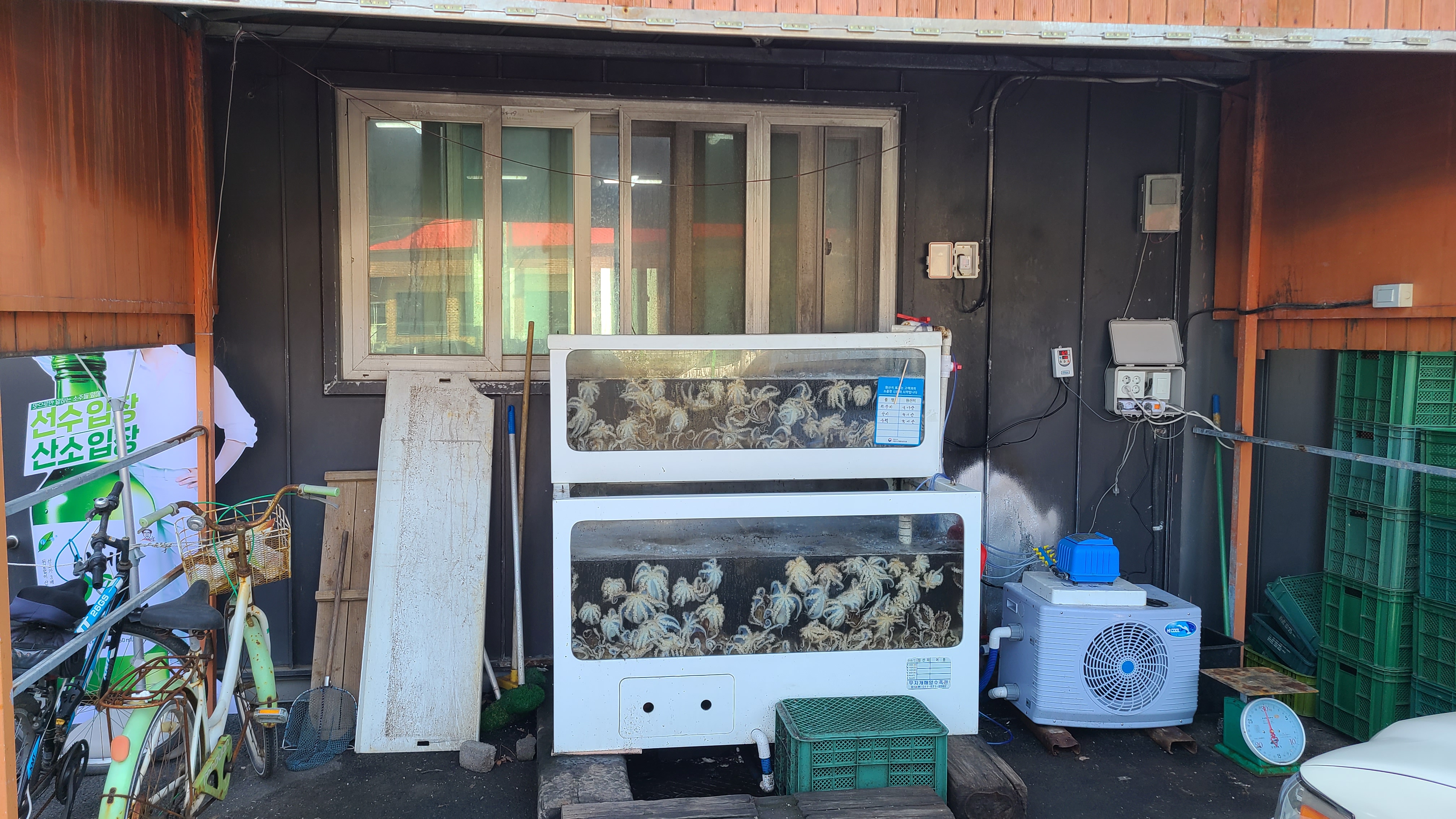 식당 입구 우측 어항에는 주꾸미들이 있었습니다.