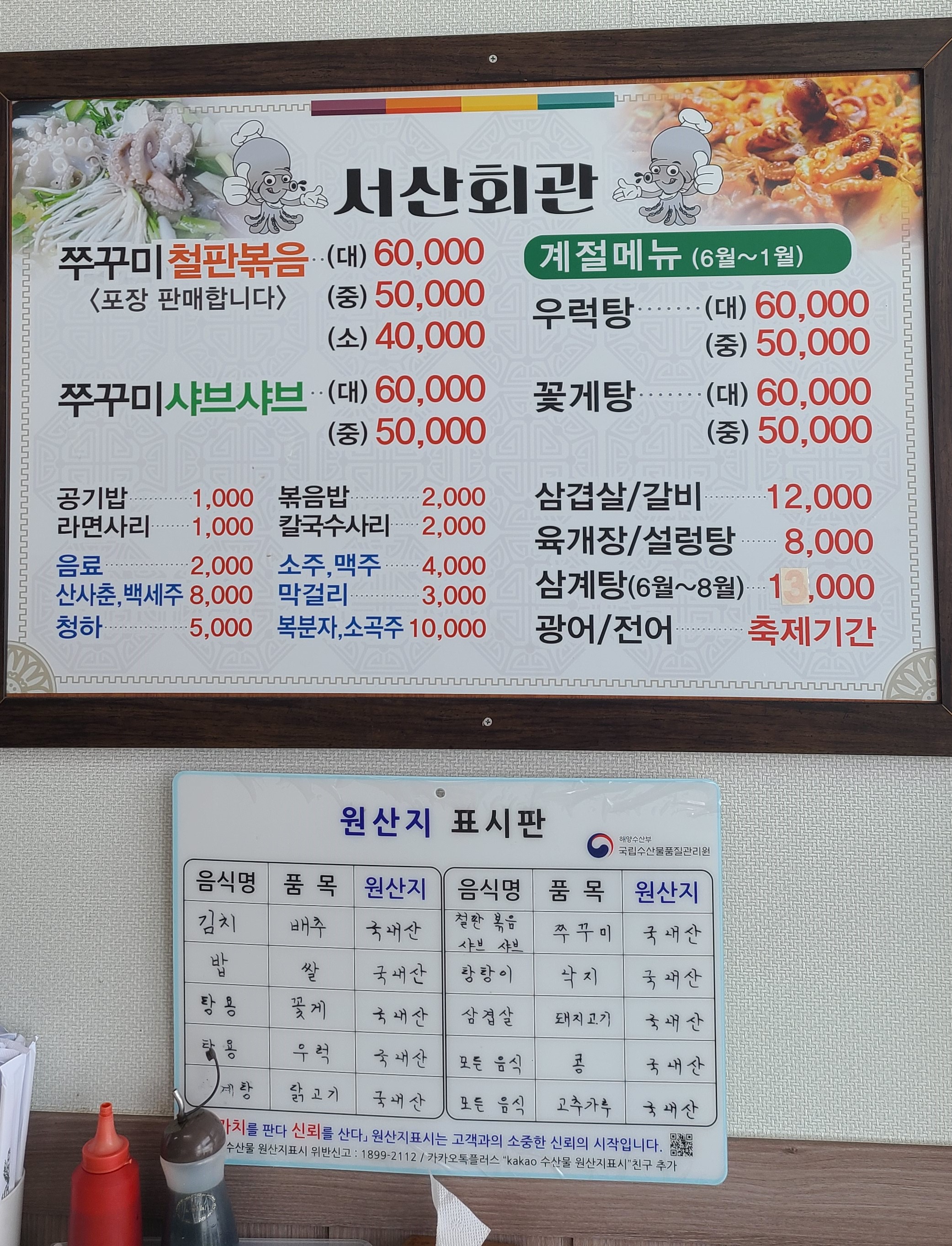 이번에 방문한 서산회관은 봄이 제철인 주꾸미 맛집입니다.