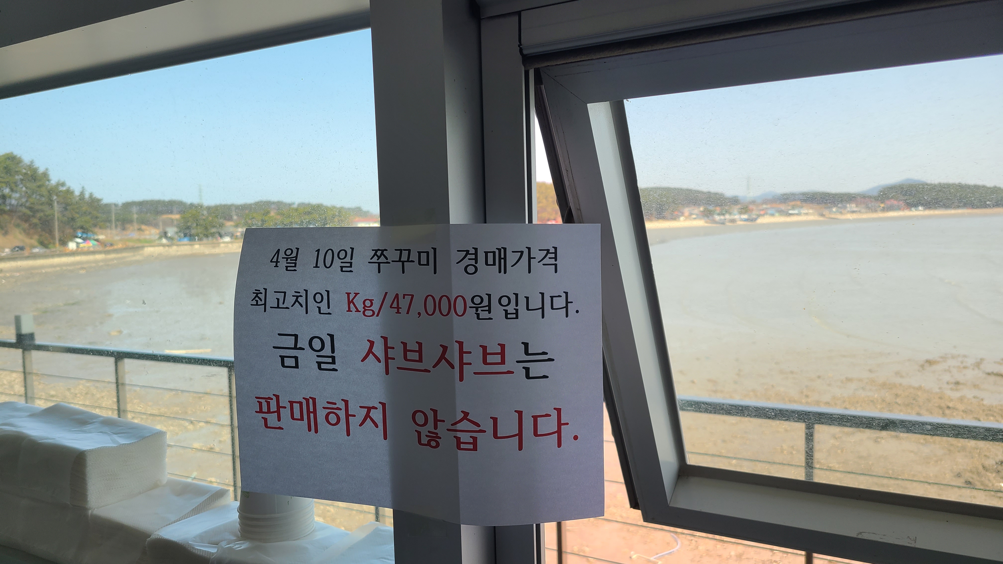 물어보니 쭈꾸미샤브샤브를 정가로 판매하다보니 경매가격이 너무 올라서 단가가 맞지 않아 판매하지 않는다고 하셨습니다.
