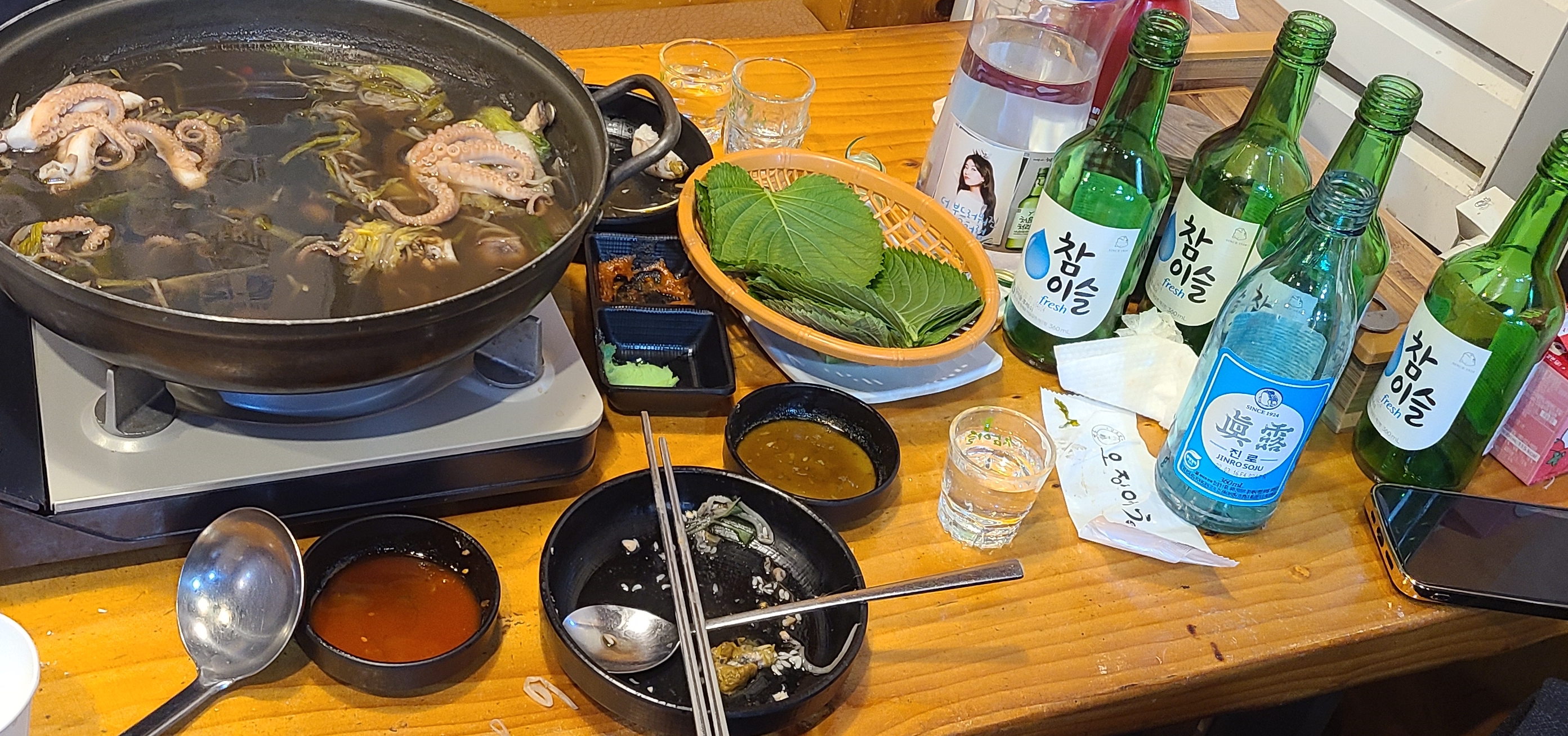 둘이서 7병을 마시고 장렬히 전사하며 나가는데 꽉 차 있던 손님들이 많이 빠졌습니다.