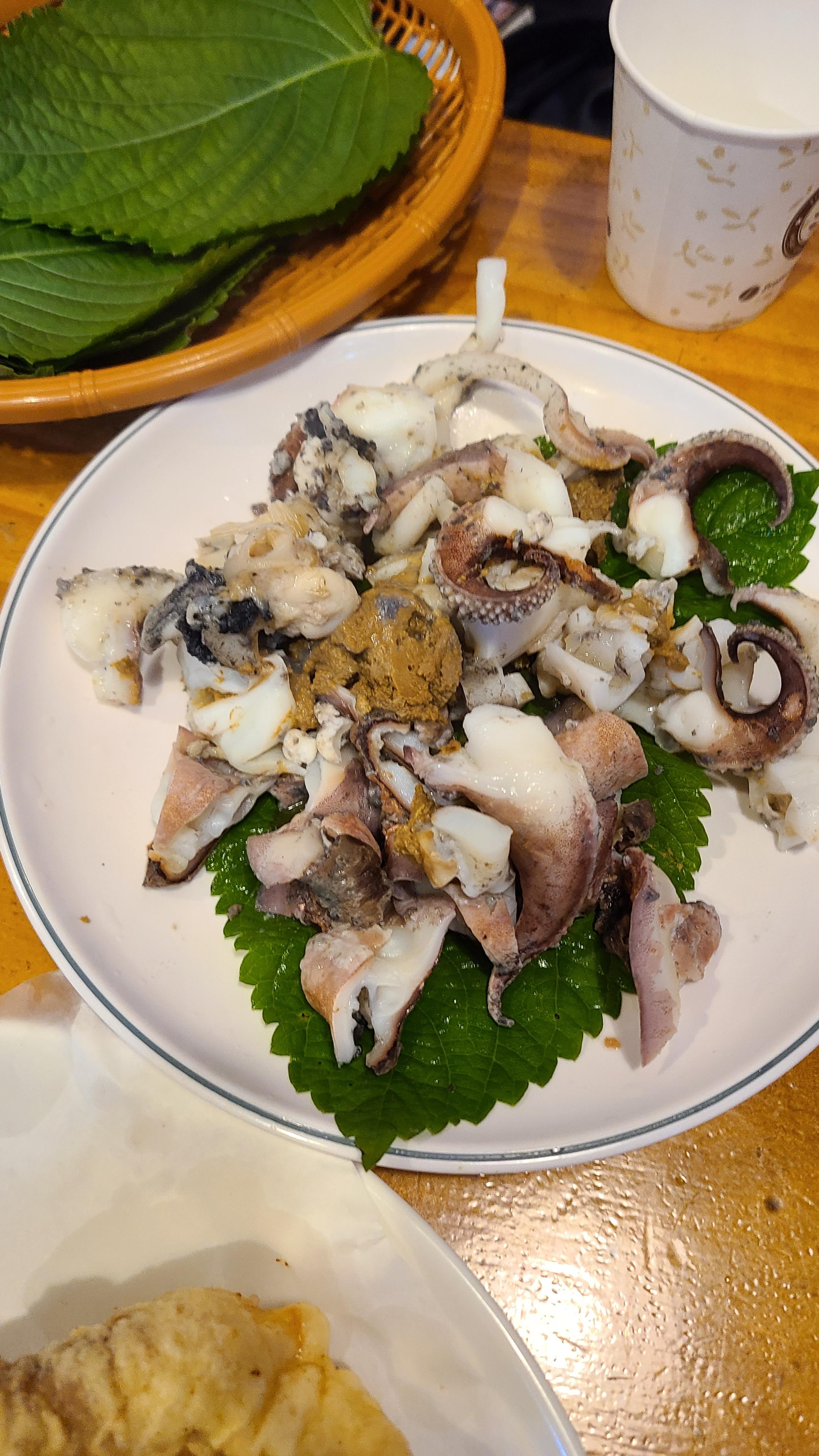 갑오징어를 기다리며 혹시나 다리까지 회로 주는지 물어보니 다리는 숙회로 주신다고 하셨습니다.