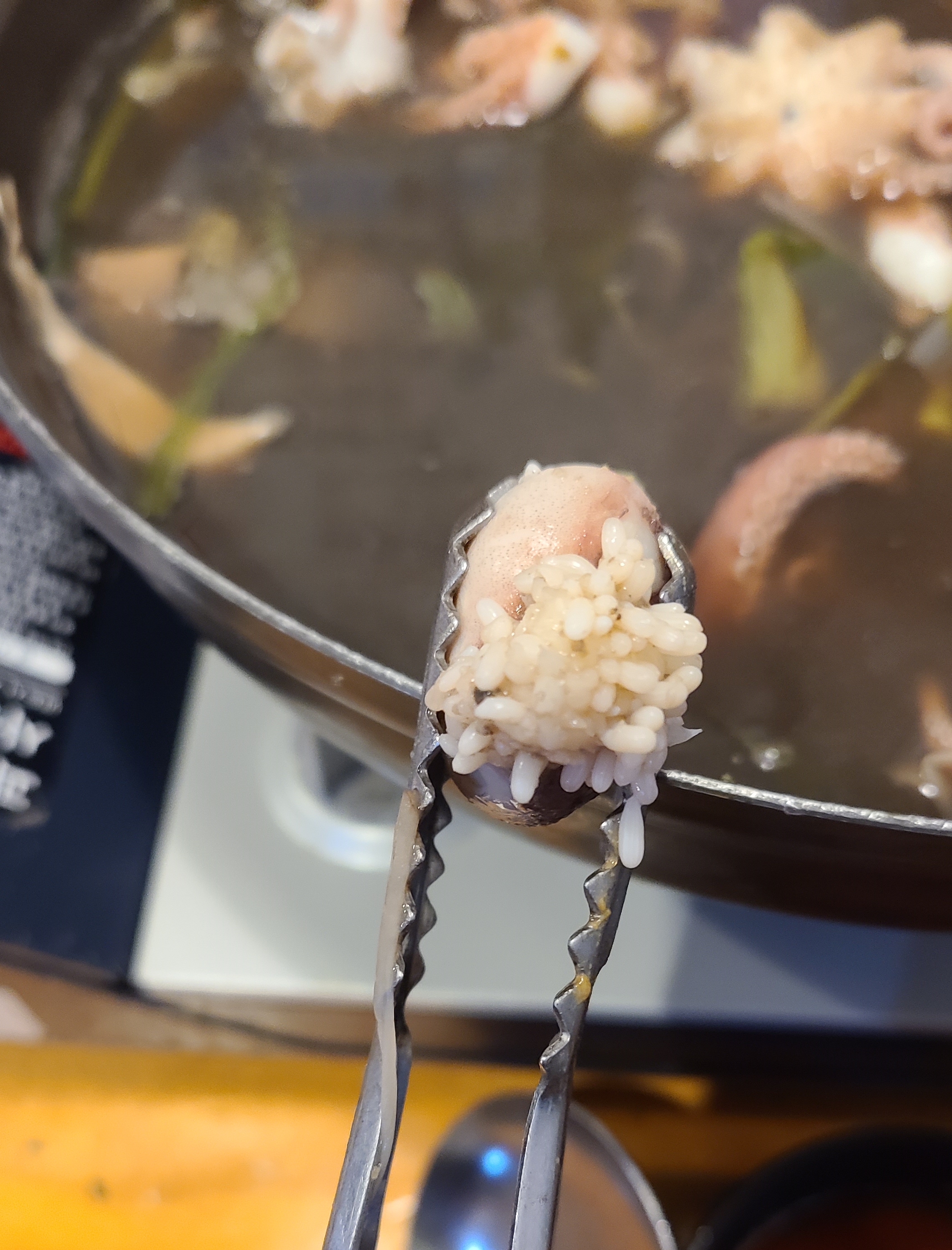 먹물이 터져서 국물이 탁해졌지만 쭈구미는 정말 맛있었습니다.