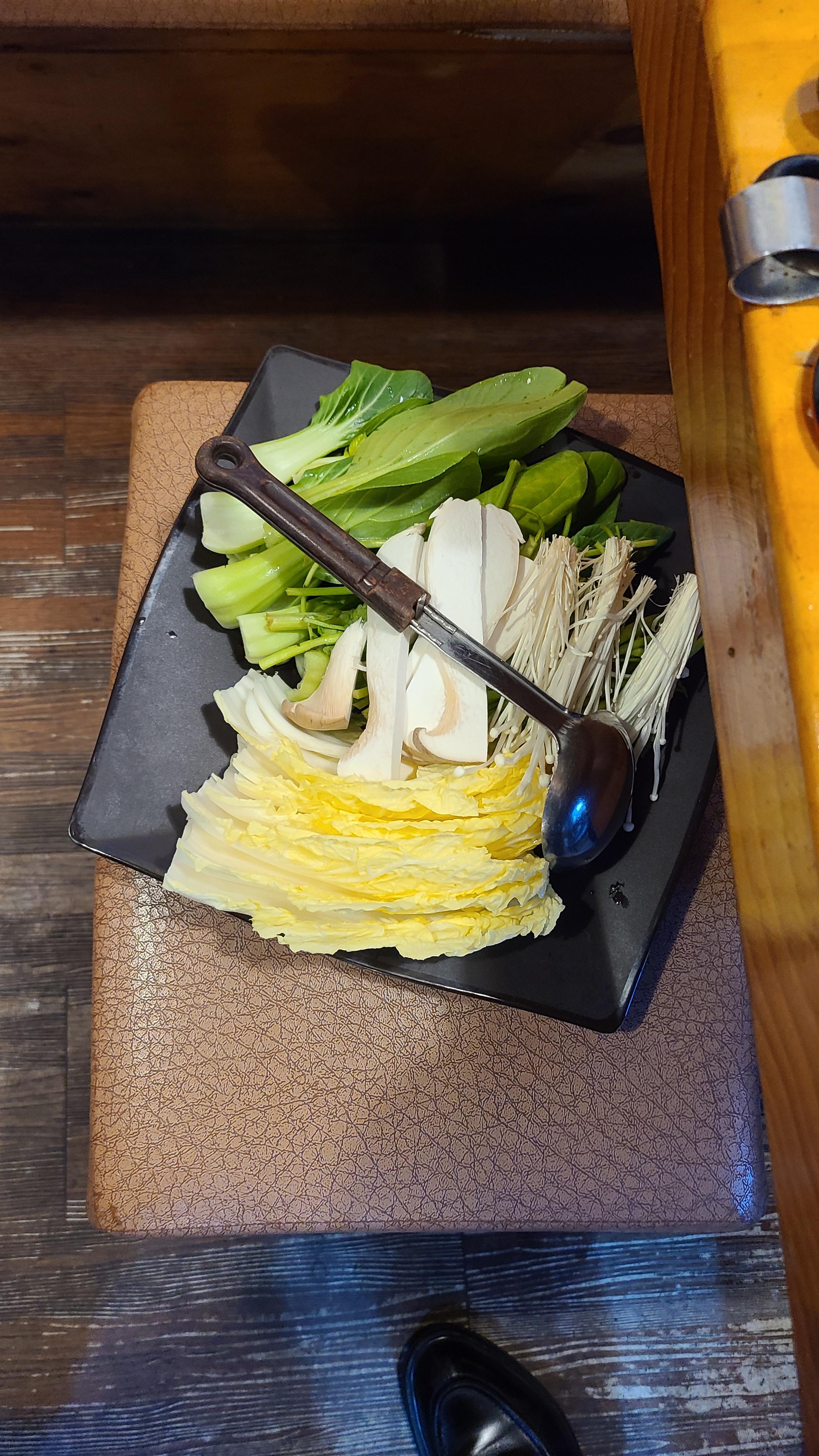 추가로 넣어 먹도록 따로 접시에 봄동, 배추, 팽이버섯, 새송이버섯을 같이 준비해주십니다.