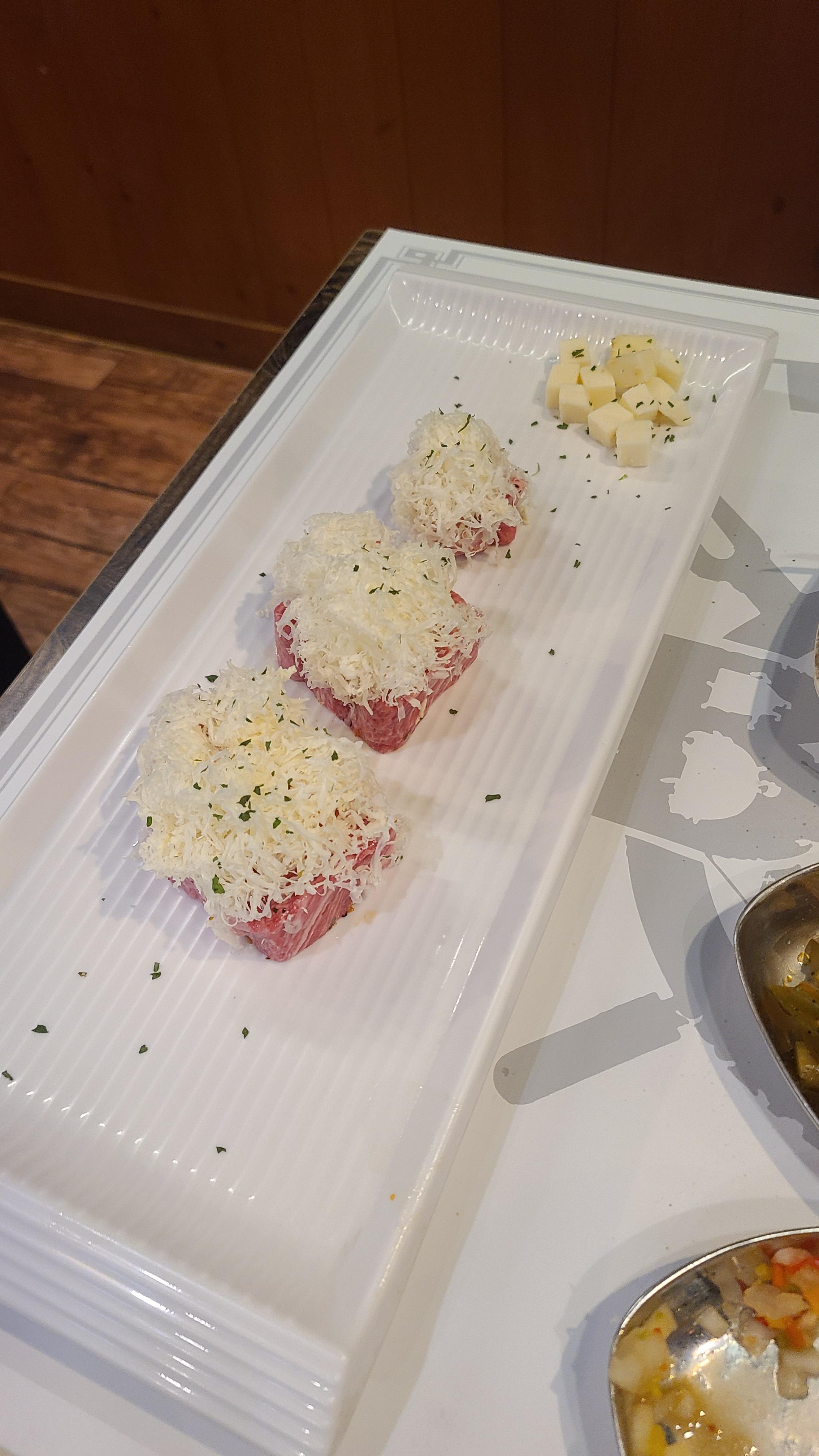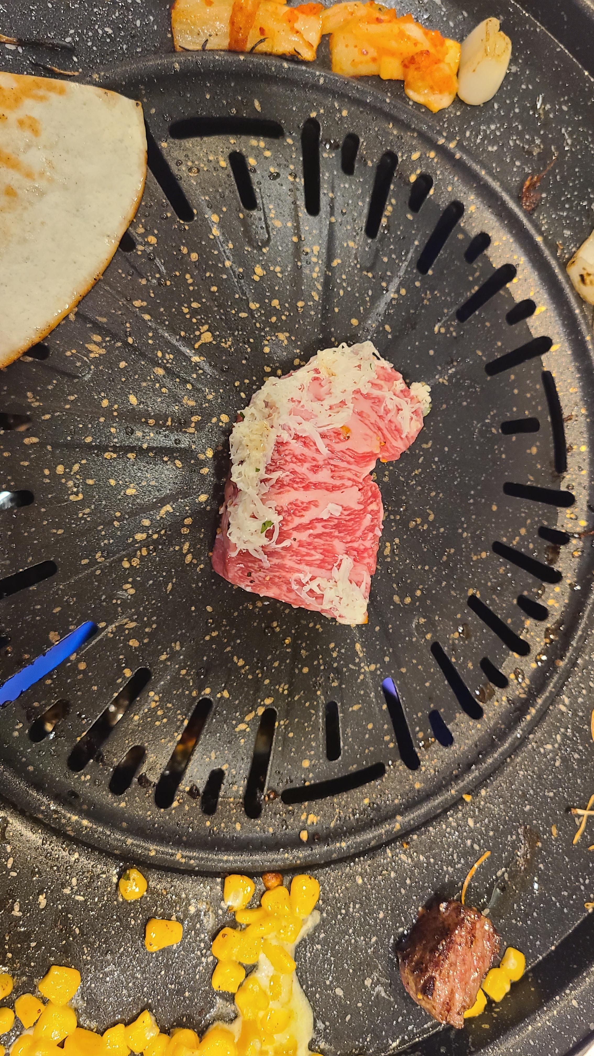 눈꽃 치즈같이 보이지만 고기의 풍미를 더해줄 버터를 슬라이스 해서 올려놓은 것입니다.