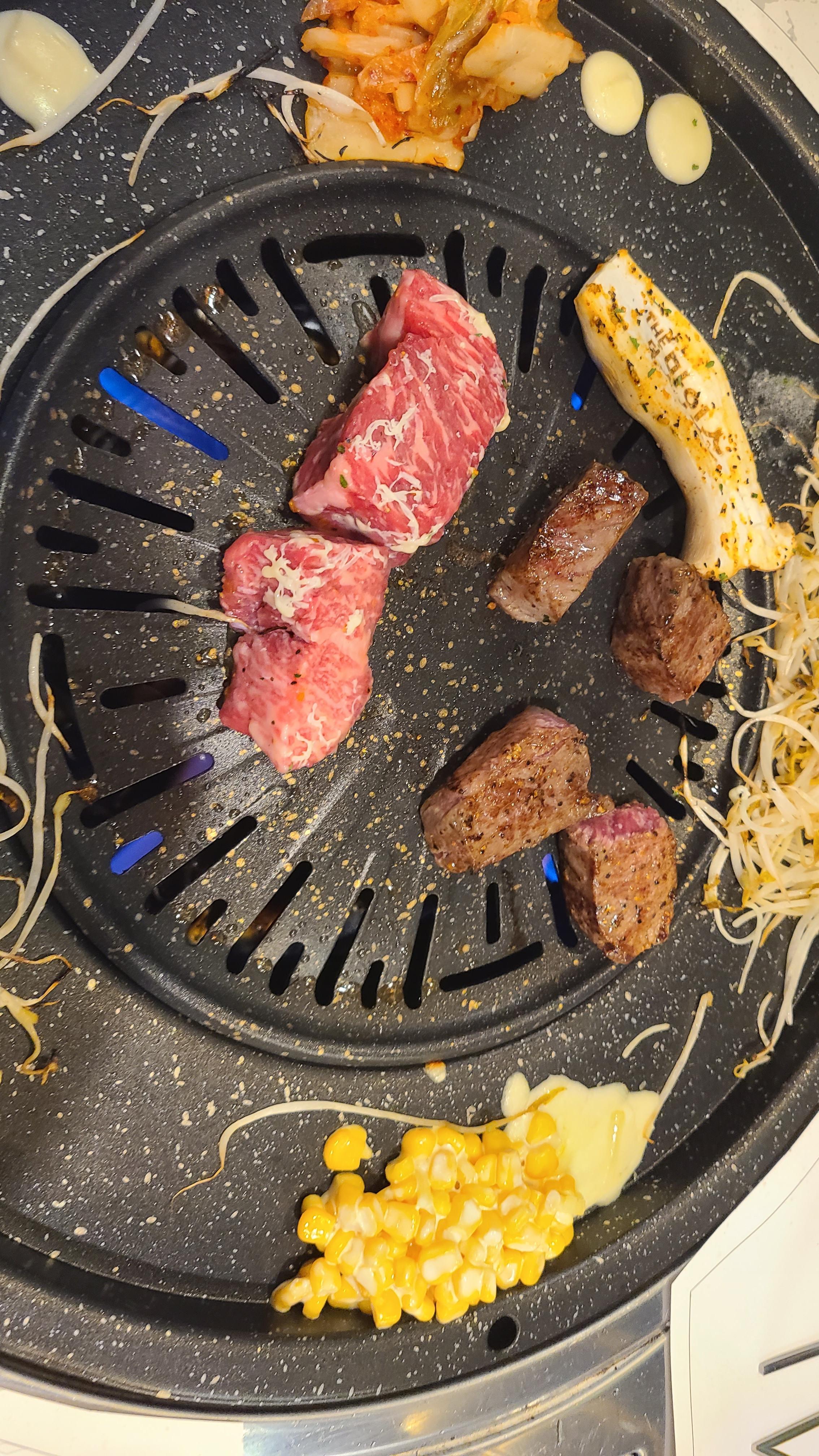 불판이 오목하다 보니 고기를 구울 때 버터가 녹으면서 바로 흘러내렸습니다.