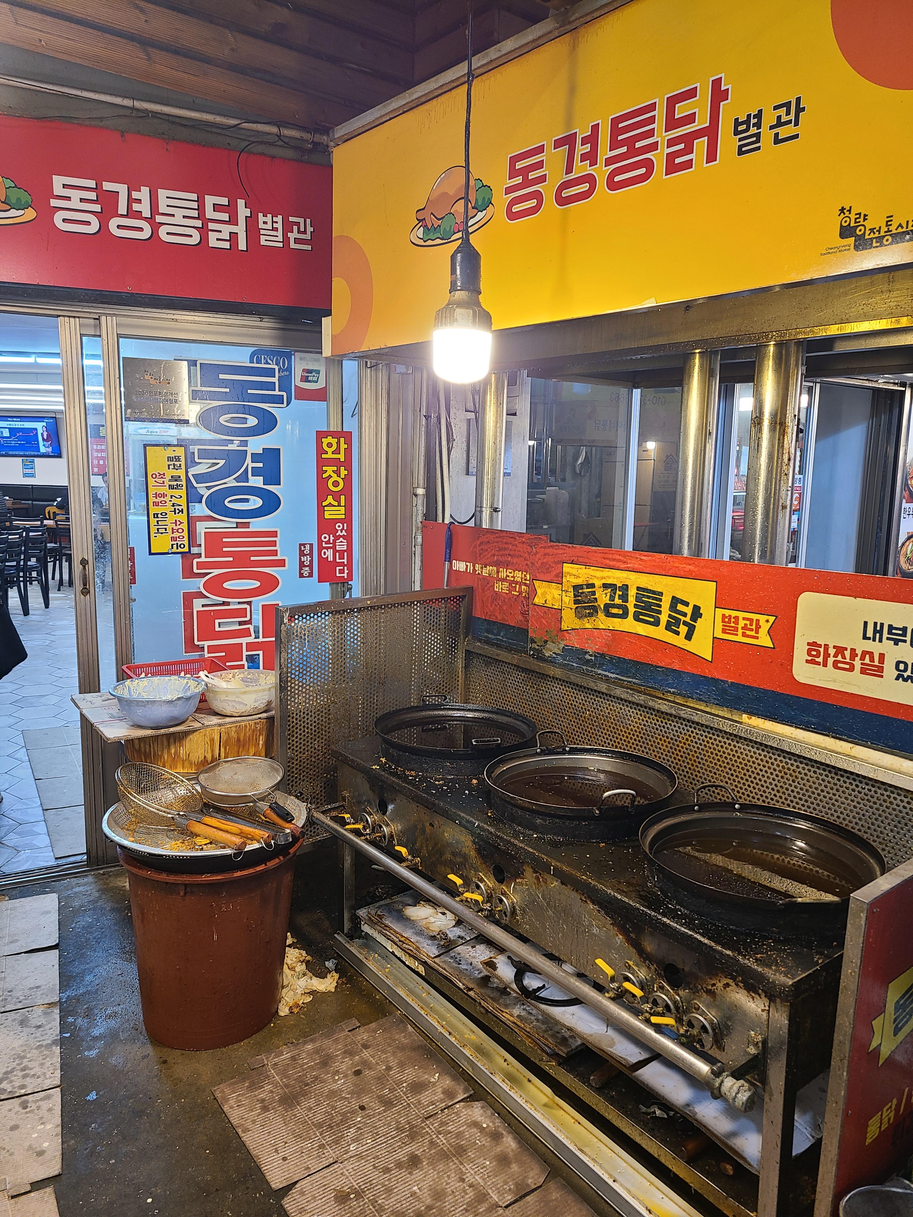 청량리 농수산물시장 입구로 들어가면 경동시장 안에 통닭골목이 있습니다.