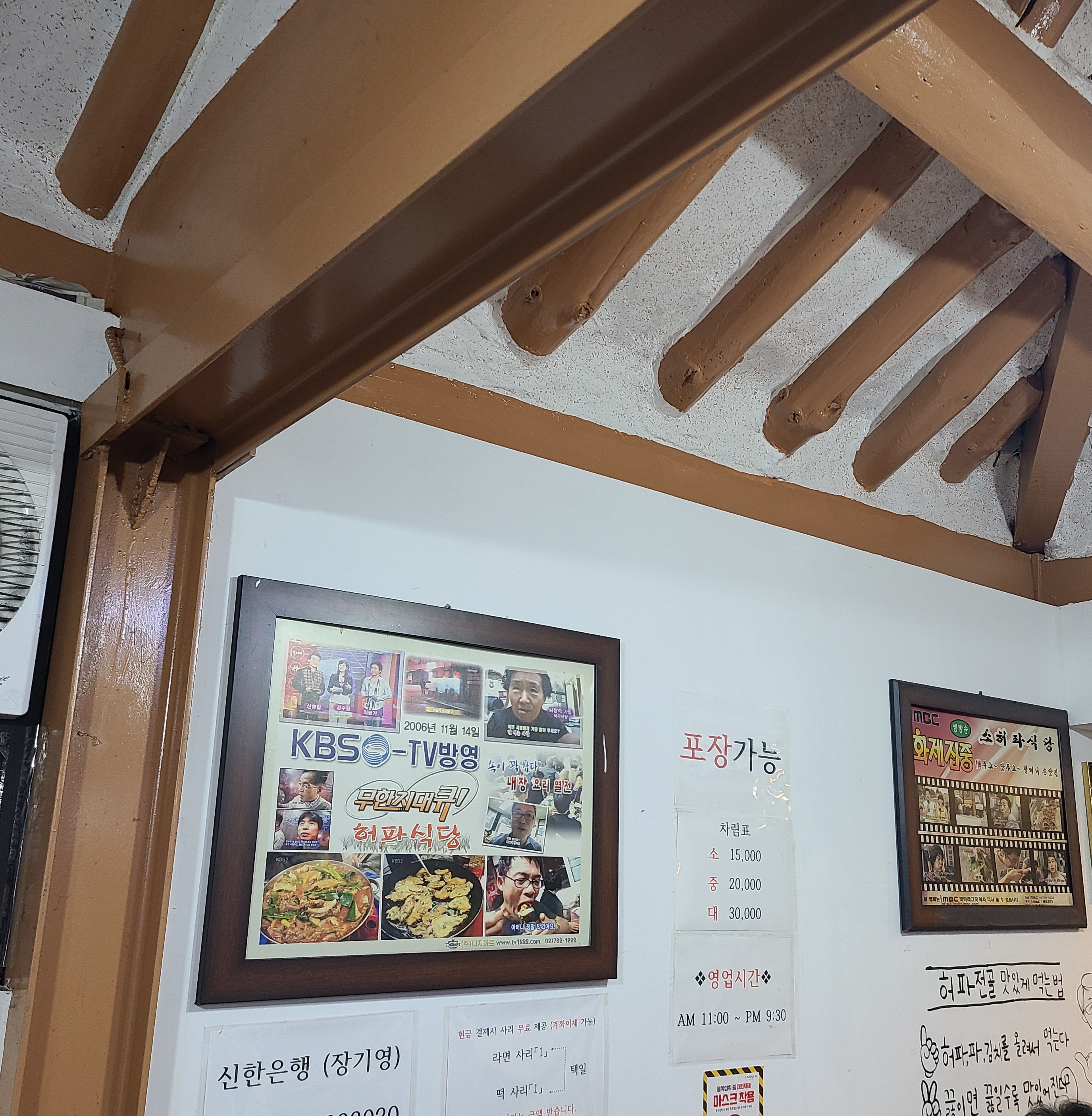벽면에 백종원의 방송 장면 및 각종 방송에 출현한 사진들이 걸려있었습니다.