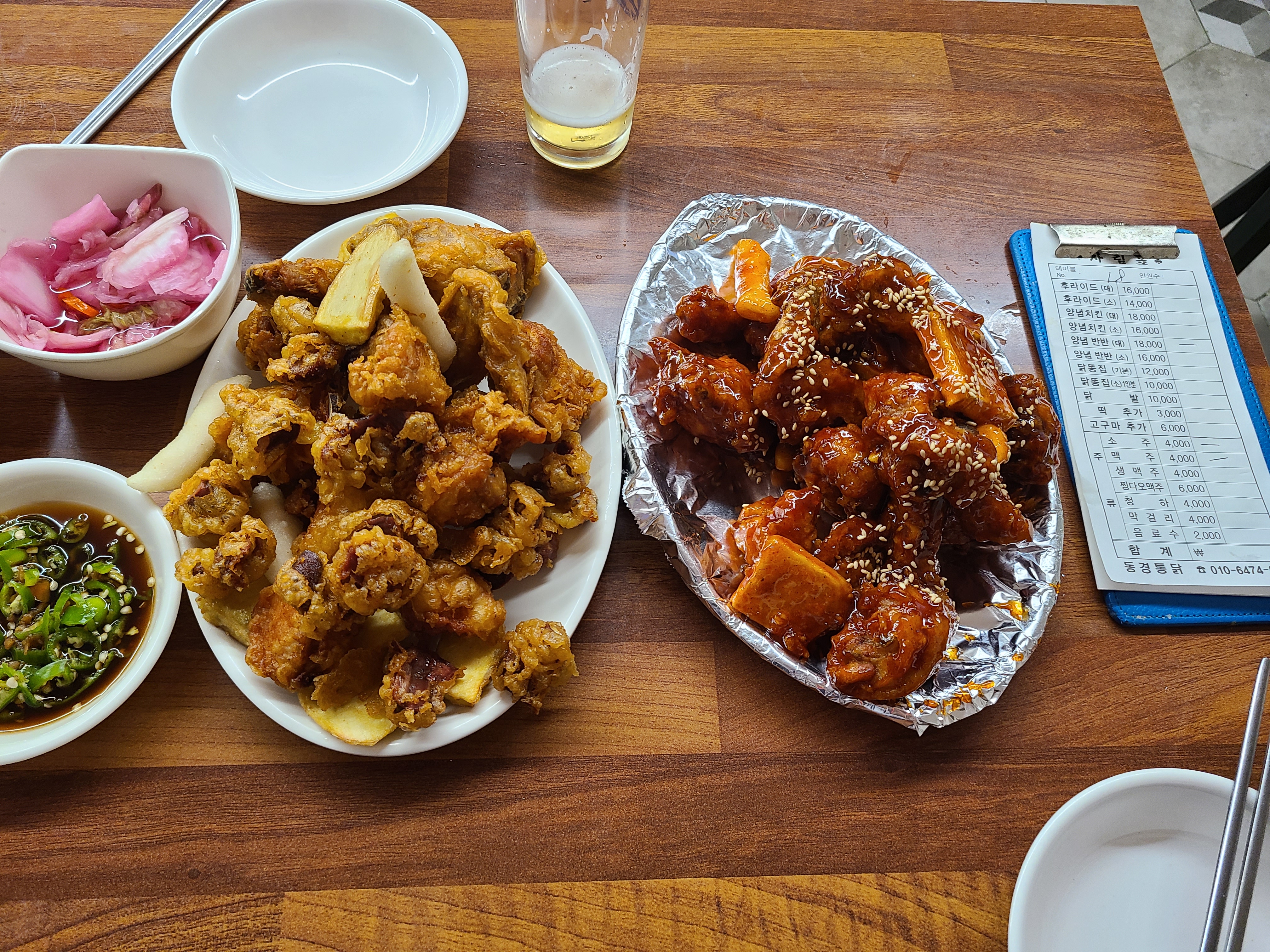 - 메뉴: 후라이드, 양념치킨, 닭똥집, 닭발